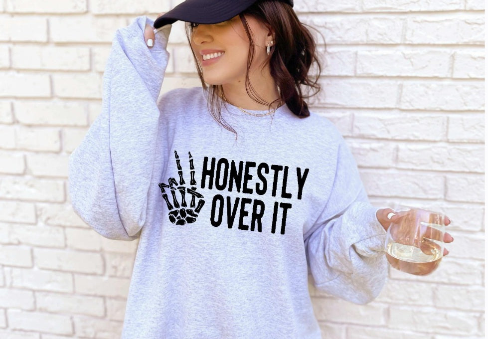 Honestly Over It Snarky Sassy Sweatshirt or Tshirt